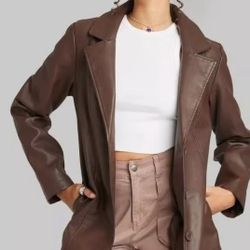 Faux Leather Brown Trench Coat $20San Bernardino, CA