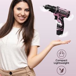 Pink Cordless Drill Set, Electric Power Drill for Women, Lightweight Electric Screwdriver Driver with Battery & Charger, 3/8" Keyless Chuck, Womens To$25Riverside, CA