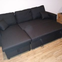 Black Linen Pull Out Sectional Sofa w/storage chaise$539Riverside, CA