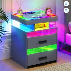 Grey LED Nightstand with RGB Dynamic Lighting, Smart Bedside Table with 2 Drawer$80Riverside County, CA