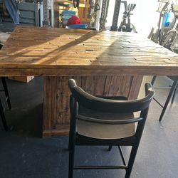 Counter height 5pc dining set solid wood medium brown 42-60”table (leaf included) and 4 matching chairs $599 (was $799, msrp $1,299)$599Fontana, CA