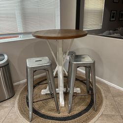 High Top Rustic Table With Two Metal Stools $125Oak Glen, CA