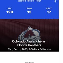 2 Tickets Colorado Avalanche Vs Florida PANTHER$100Denver, CO