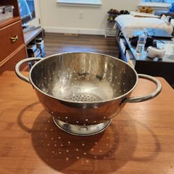 stainless steel footed colander, durable, 9 inch D 5 inch tall, good condition $4Parker, CO