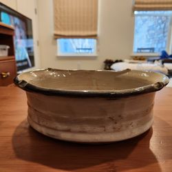 handmade studio pottery bowl with a white glaze and dark rim, 7x8.5x2.5 inch, good condition $5Parker, CO