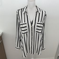 Express Slim Portofino Black and White Striped Women's Button Down Blouse, XL$25Denver, CO