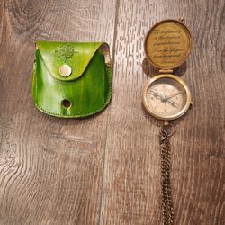 New Hiking and Touring brass-finish pocket compass with an engraved lid and a green leather carry[ing case, made of brass$7Parker, CO