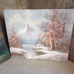 Beautiful Painting Framed Cabin On Frozen Lake In Mountains By M Dianne 24" X 20"$100Aurora, CO