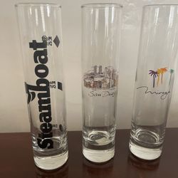 Vintage Taller Shot Glasses, Steamboat, San Diego And Mirage, $10 Each Or All 3 For $20$15Aurora, CO