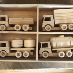 Wooden Vintage Set Of 4 Natural Wood Childrens Trucks In Container$85Centennial, CO