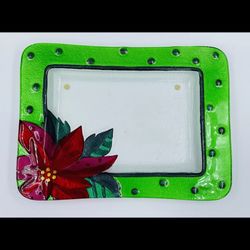2010 Lori Siebert DEMDACO Poinsettia Hand painted Glass Serving Tray 12 X 8.5"$20Aurora, CO