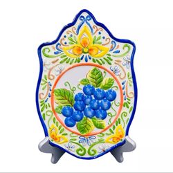 Vtg 1980s Embossed Hand Painted Pottery Grape Design Wall Hanging Trivet 11”$30Aurora, CO