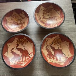 Set Of 4 Wooden Elephant And Giraffe Hand Painted Bowls$35Aurora, CO