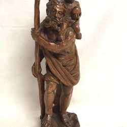 ANTIQUE 12" WOOD HAND CARVED PATRON SAINT ST CHRISTOPHER JESUS FIGURE STATUE$175Denver, CO