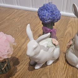 Ceramic Bunny Figurines And Floral Candles$20Littleton, CO