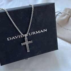 David Yurman Black Sterling Silver Cross Necklace