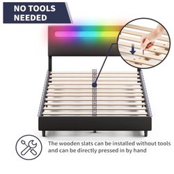 😀 King Size ijuicy Bed Frame with RGB LED Headboard Tufted Bedroom Furniture, PVC Upholstered Platform Bed Frame, Smart Compatible with Alexa$120Denver, CO