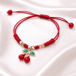 Red Adjustable String Bracelet with Cherry Charm – Gold Tone Beads, Lucky Style$33Westminster, CO