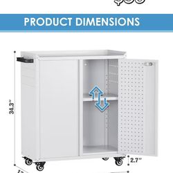 😀 13.8"Dx26" Wx34.3" H Steel Garage Storage Cabinet with Wheels and 2 Lockable Doors, Metal Storage Cabinet with Pegboard and Hooks for Garage,Home$58Denver, CO