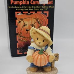 BRAND NEW CHERISHED TEDDIES ED PUMPKIN CARVING SET 1999 EXCLUSIVE FIGURINE Fall New Cherished Teddies Halloween Pumpkin Carving Set Ed Figurine Enesc$12Thornton, CO