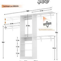 😀 8FT Closet System with Shelves, 96'' Closet Organizer System with 3 Hanging Rods, Wall Mount Bedroom Wardrobe Walk-in Closet, Adjustable Cloth Garm$99Denver, CO