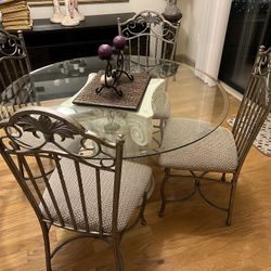 4 Swivel Iron Upholstered Chairs & Glass Top Table $550Thornton, CO