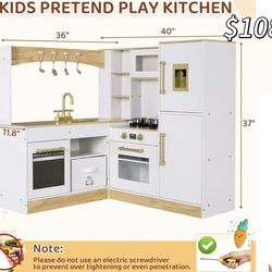 😀 LAZY BUDDY Corner Play Kitchen, Wooden Kids Kitchen Playset with Light & Sound, Toddler Interactive Pretend Toy$108Denver, CO