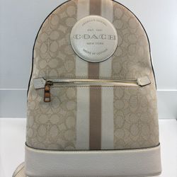 Coach Beige Logo Backpack Leather Trim Bag Charm Adjustable Strap Gold Hardware$160Denver, CO