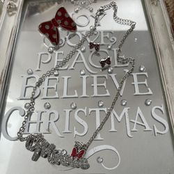 Disney Minnie Necklace, Earrings And Two Finger Adjustable Ring$22Denver, CO