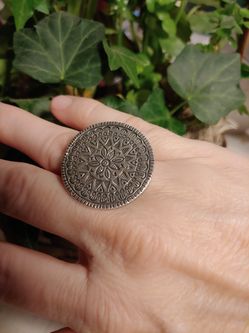 Unmarked Silver ring with flower pattern$25Denver, CO
