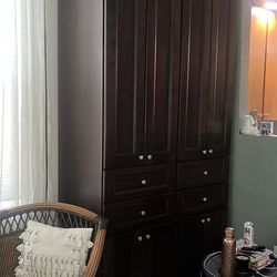 😀 Dark Brown Storage Cabinet with Drawers and Shelves, Standing Kitchen Pantry Cabinet, Floor Storage Cabinet Hutch Cupboard, Coffee Bar Station$70Denver, CO