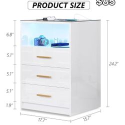 😀 High Gloss Nightstand with Wireless Charging Station&LED,Bedside Table with 3 Color Dimmable Auto Sensor & USB & Type-C Ports and 3 Drawer$85Denver, CO