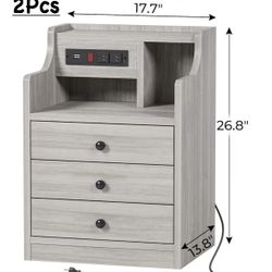 π 2Pcs Tiptiper Nightstand, Grey Night Stands with Hutch and Charging Station, Nightstand with 3 Drawers for Bedrooms, Modern Bedside Table End Side $120Denver, CO