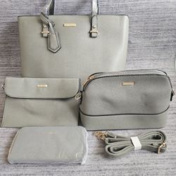 Women Fashion Handbags Wallet Tote Bag Shoulder Bag Top Handle Satchel Purse Set 4pcs, New Gray.