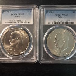 1972-S PCGS MS67 SILVER EISENHOWER SILVER DOLLAR BOTH.$55Colorado Springs, CO