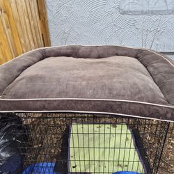 Brown sofa-style pet bed with white piping. $30Colorado Springs, CO