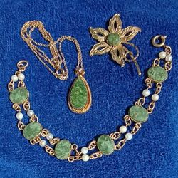 1/20 12 K GF ,Jade,Faux Pearls Bracelet,Brooch & Necklace $75Colorado Springs, CO