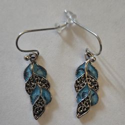 Faux Turquoise & Silver Tone Feather Design Dangle Drop Earrings$10Calhan, CO