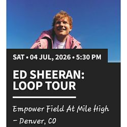 Ed Sheeran Concert Tickets$115Denver, CO