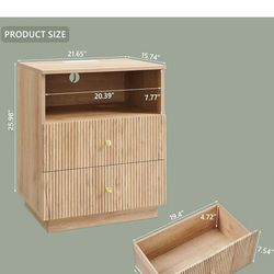 😀 Fluted Night Stand with Charging Station, 21.65" Nightstand with Drawer/Open Shelves, 2 Drawer Dresser for Bedroom, Morden End Table Bedside Table $68Denver, CO