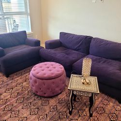 Moroccan Purple Suede Living Room Set – Sofa, Chair, Rug, Table, Lamp & Ottoman – Excellent Condition$999Westminster, CO