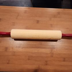 Fletchers' Mill maple wood rolling pin with cinnabar (red) handles, crafted from solid rock maple wood. $3Parker, CO