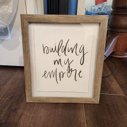 Inspirational wall art piece, "building my empire" in a script font, Modern rustic frame with a minimalist white mat, good condition, 14"×16"$7Parker, CO