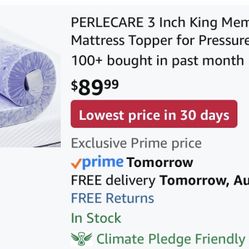 PERLECARE 3 Inch King Memory Foam Mattress Topper$40Denver, CO