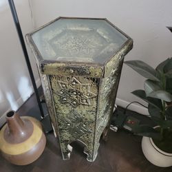 Moroccan Hand Punched Brass Side Table with Glass Top from Badia Design Inc.$800Denver, CO