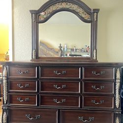 Queen Wood Bed frame And Dresser With Mirror$150Commerce City, CO