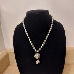 925 Sterling Silver Peacock Pearl Necklace, Large Floral Silver Orb Pendant, Dark Grey Freshwater Pearl Jewelry.$99Denver, CO