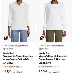 Lands' End Women's 3/4 Sleeve American-Grown Supima Cotton Polo Shirt $25Northglenn, CO