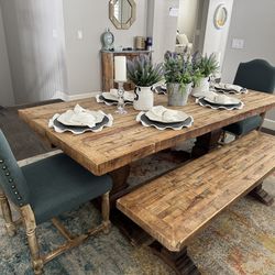 Brown farmhouse, dining room, table, and chairs$380Denver, CO