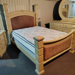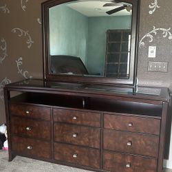 Queen Wood Bed frame And Dresser With Mirror$150Commerce City, CO